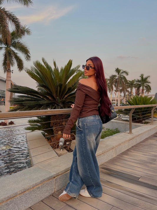 Off-Shoulder Shimmer Top 2 Brown