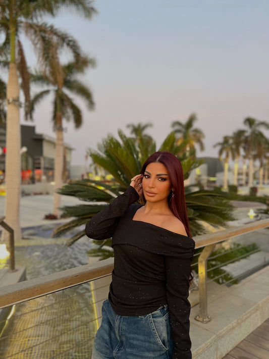 Off-Shoulder Shimmer Top 2 Black