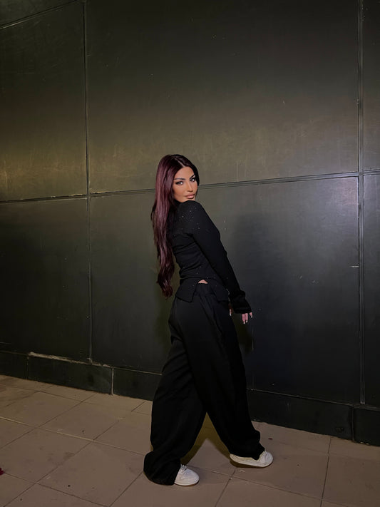 High Neck Shimmer Top1 with Side Slit Black