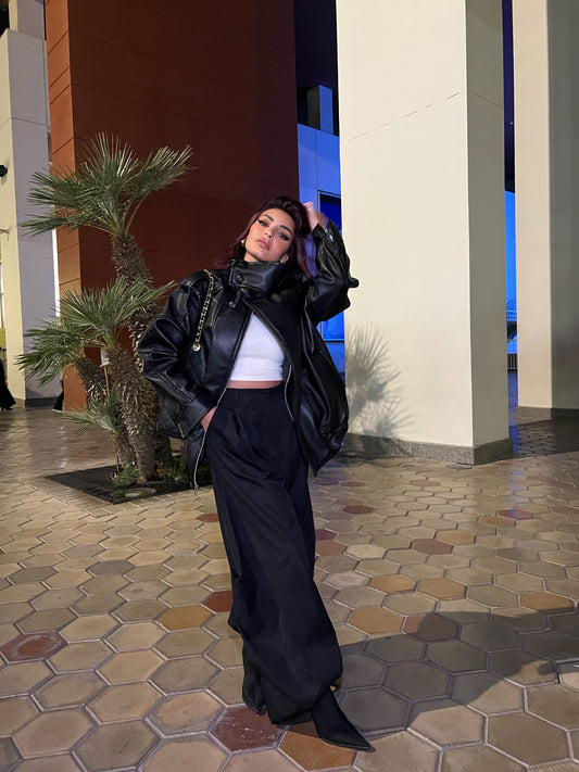 Cropped Leather Biker Jacket