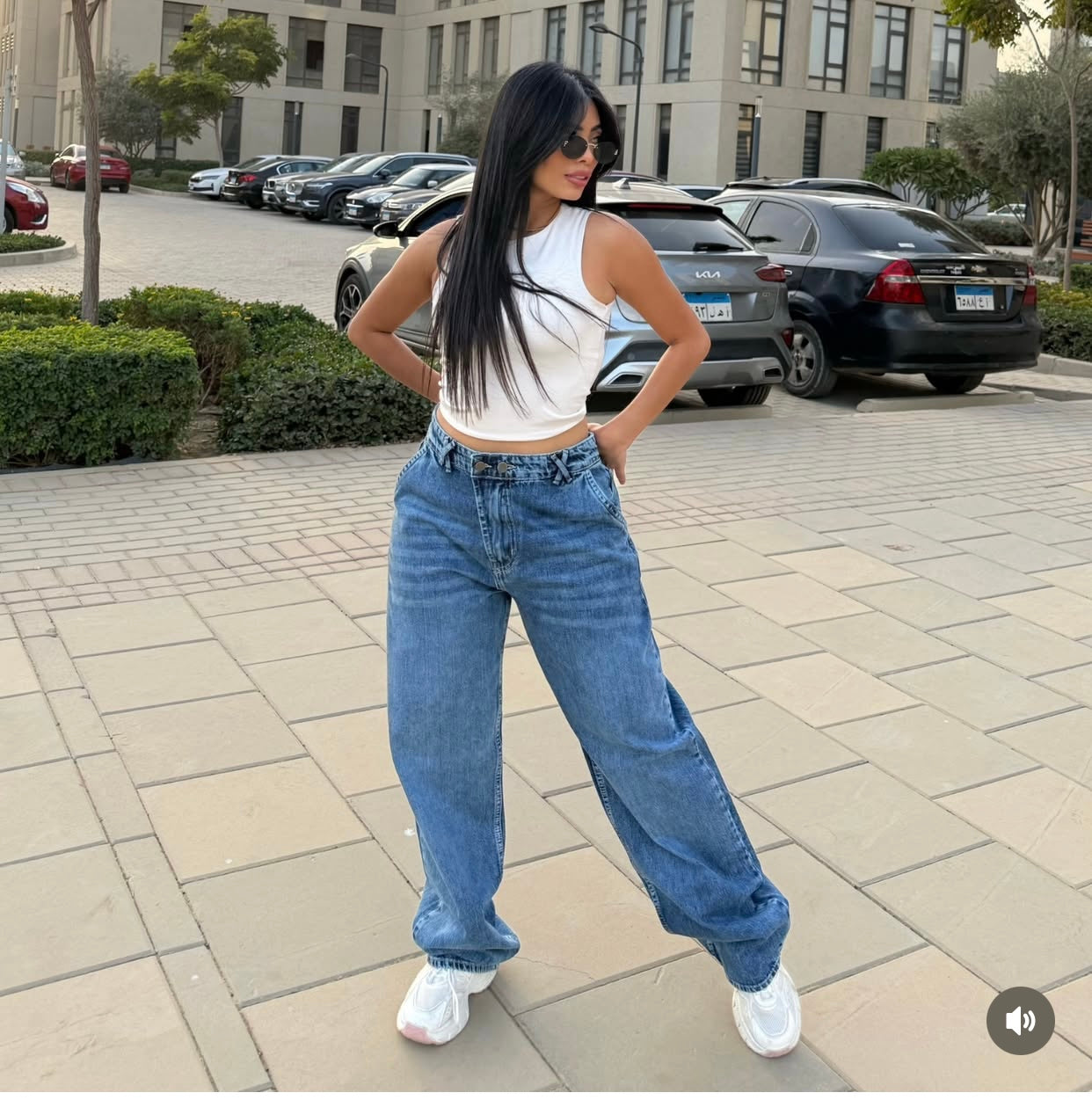Baggy wide leg jeans featuring a unique X-tie waist design with double buttons for a secure adjustable fit.