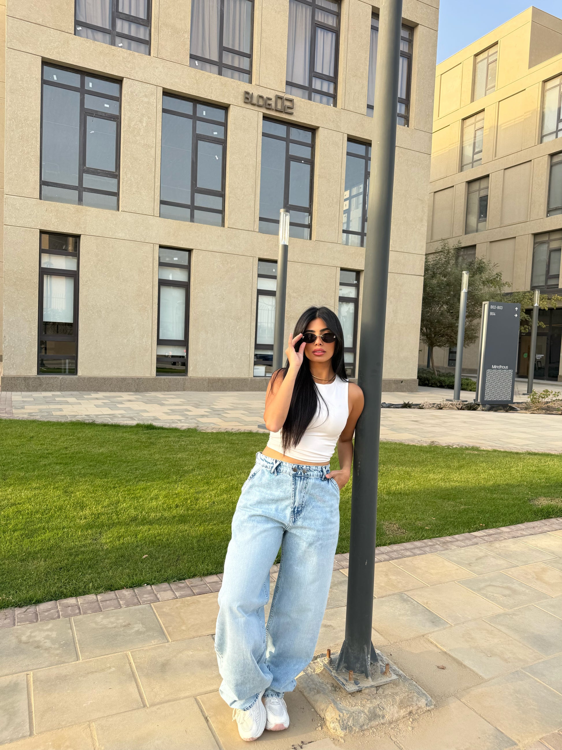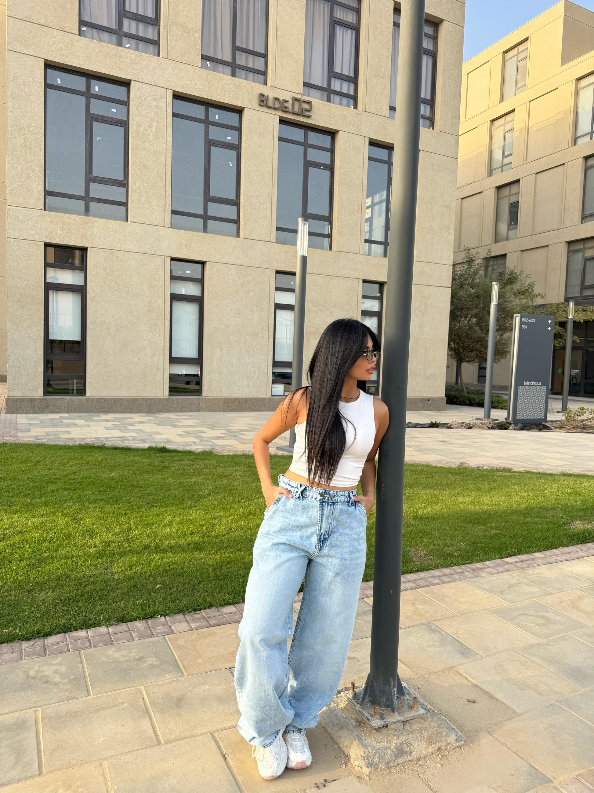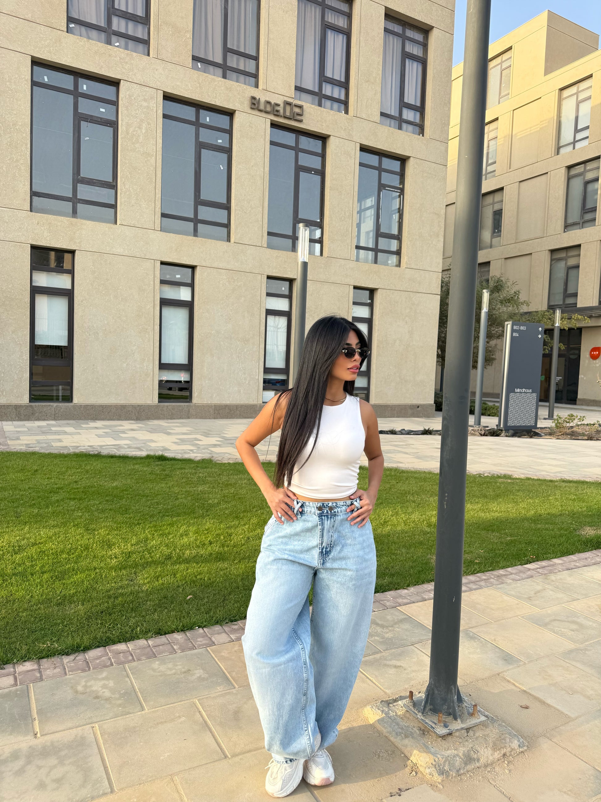 Baggy Jeans with Double Button & X Tie 2B light blue