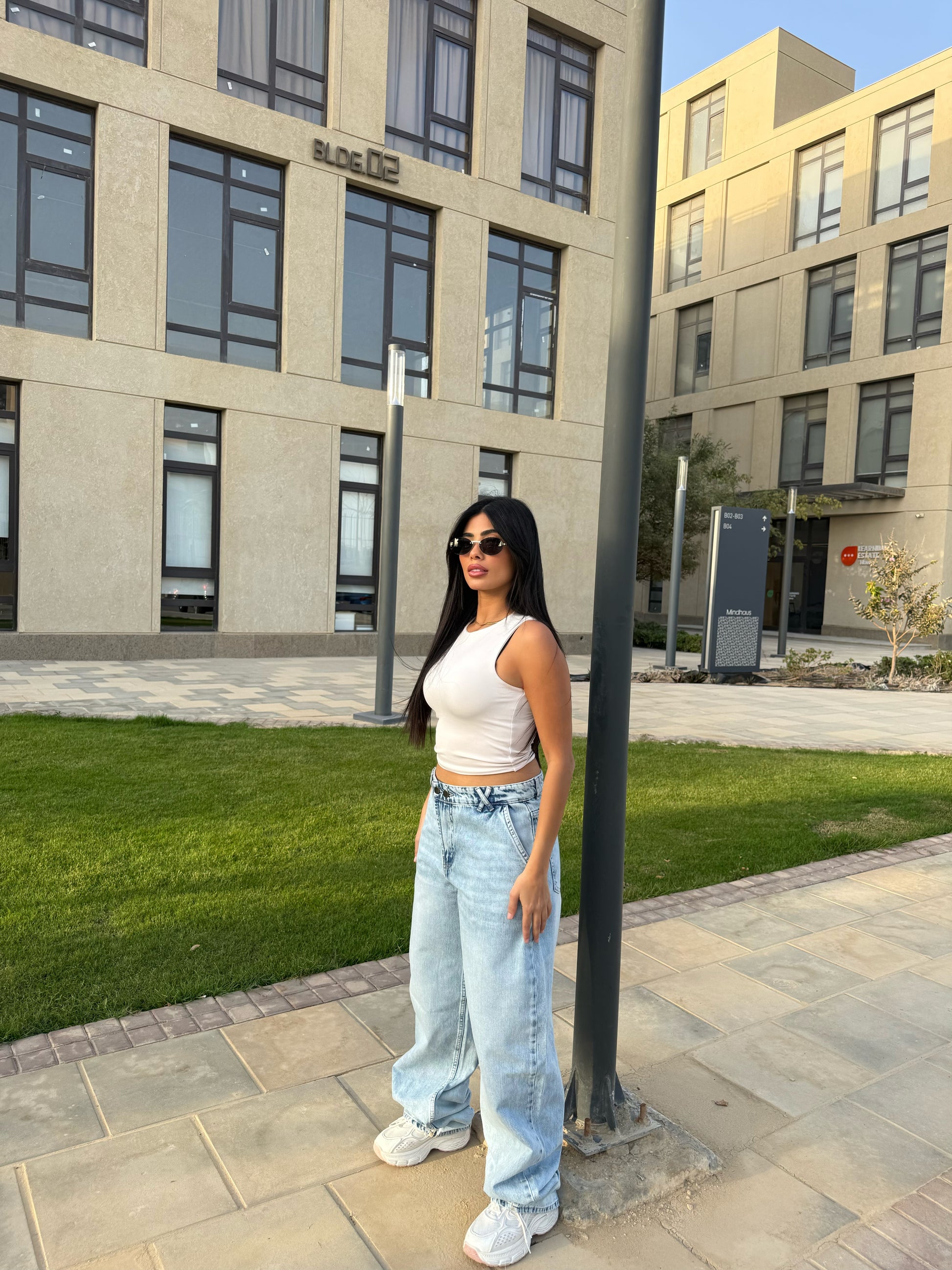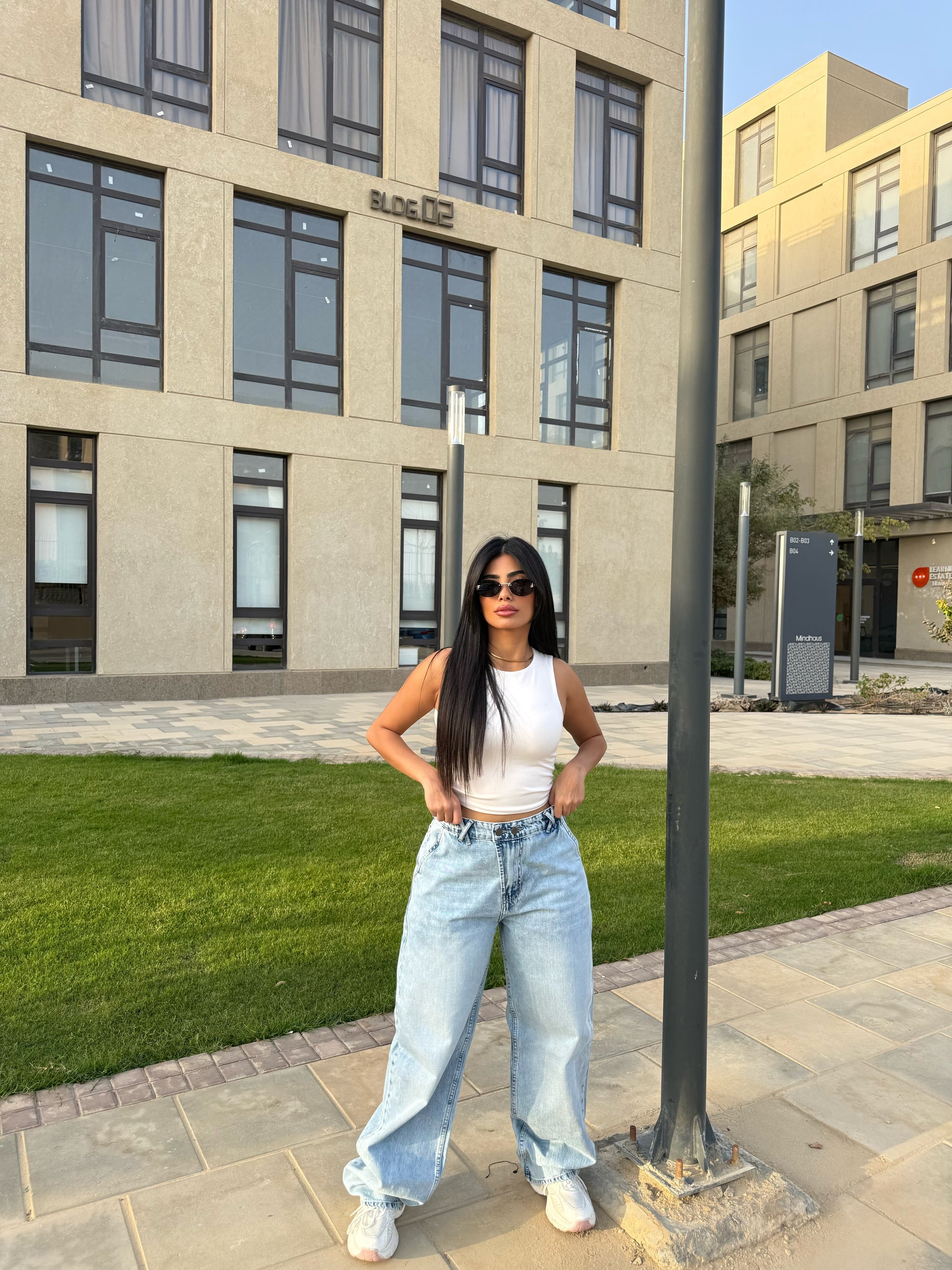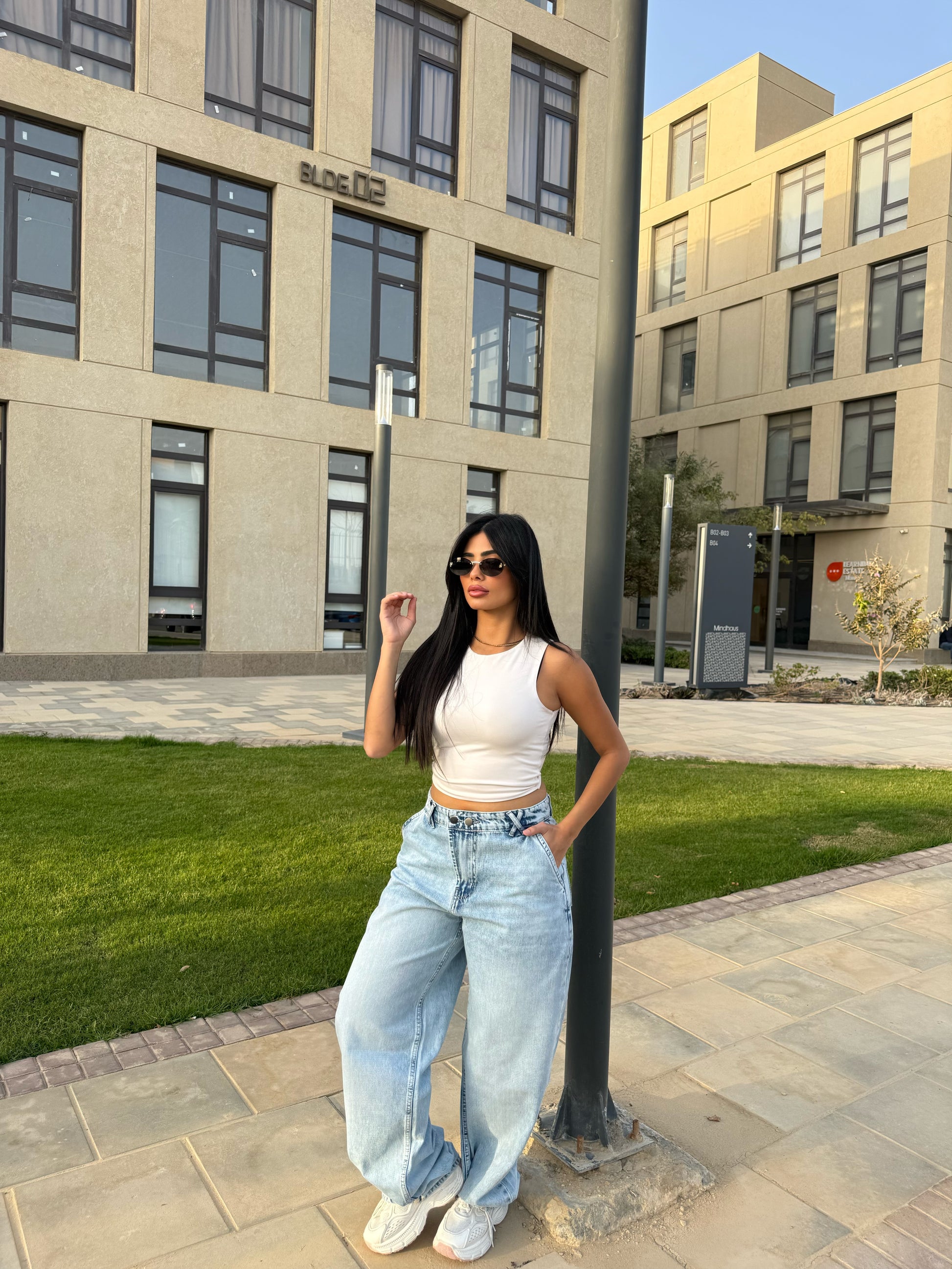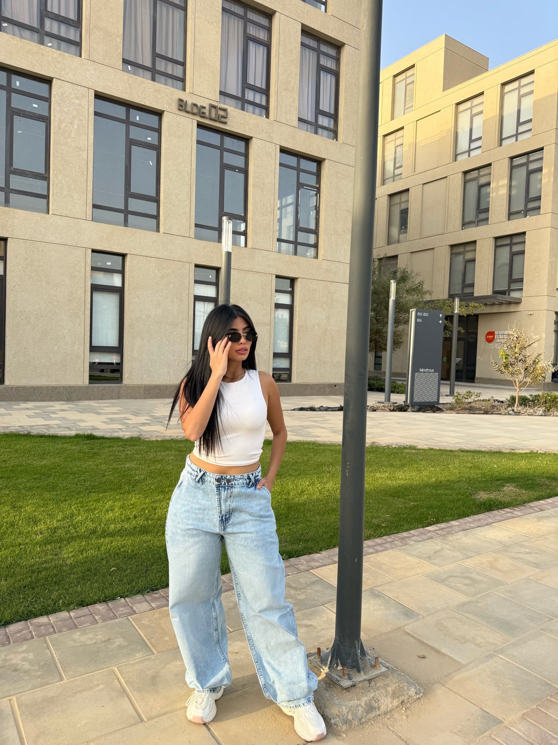 Baggy Jeans with Double Button & X Tie 2B light blue